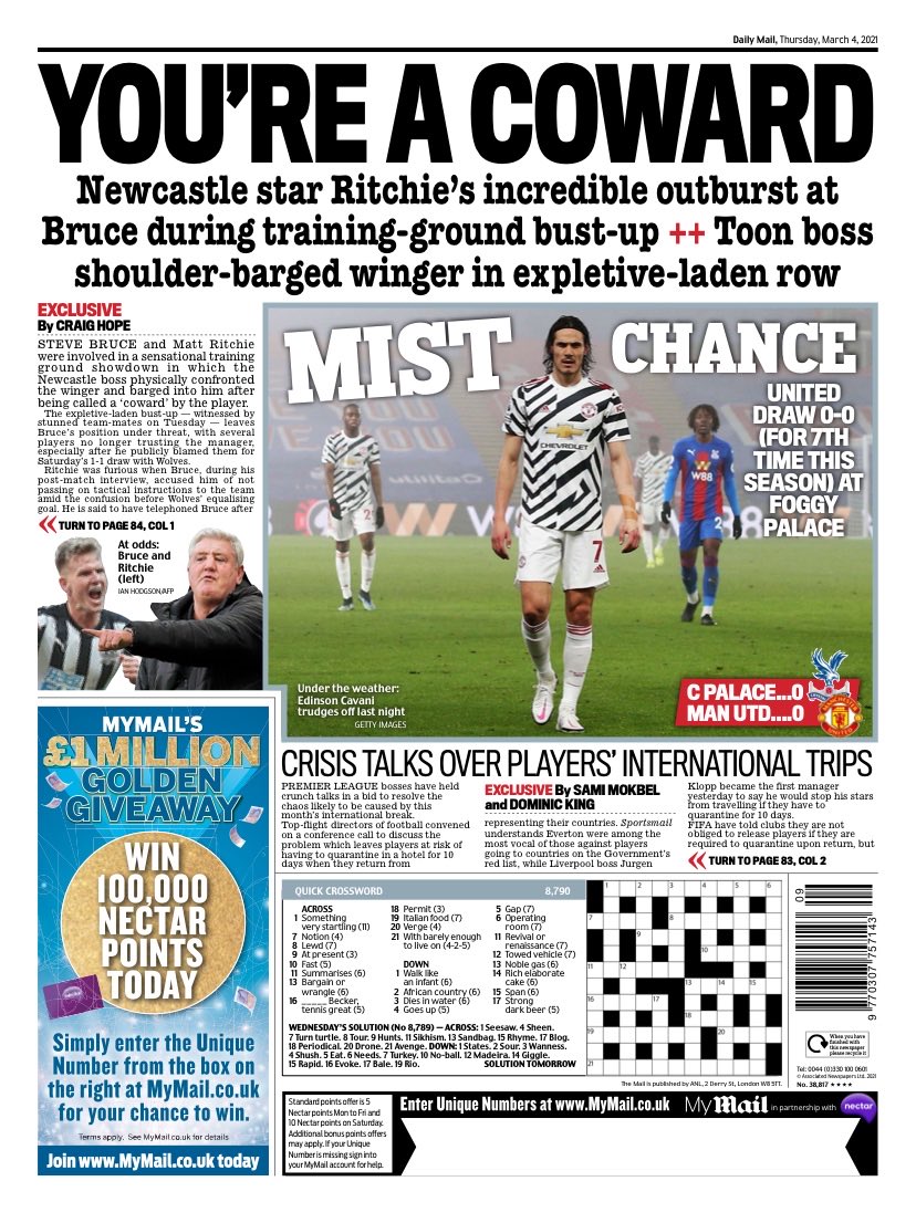 Newspaper Headlines Football Super League Fury And United In Grief Bbc News